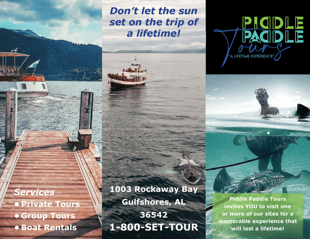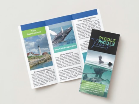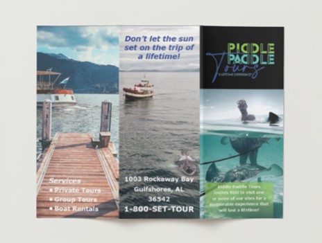 Piddle Paddle Tours is a fictional tour company. My given objective was to create a 3-fold brochure that includes the brand logo, colors, and copy text provided by the client. This objective includes achieving proper alignment, readability, copy segmentation, and heading/subheading usage. All design choices were made in accordance with the client’s design brief and branding.
